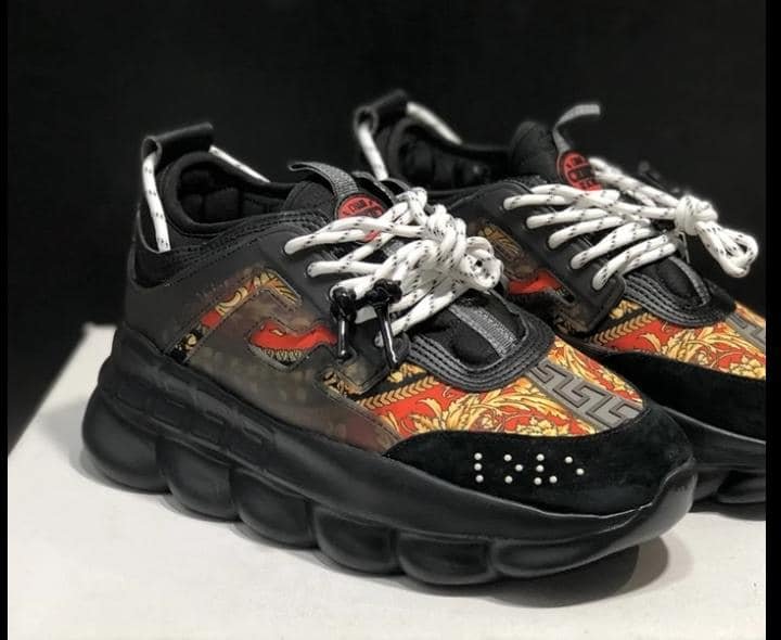 Zapatillas Unisex Versace Chain Reaction – Barroco naranja y negro – Entrega: 15 a 60 días
